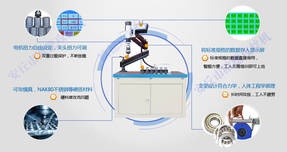 多軸攻絲機具有設計新穎制作精良工藝先進。歡迎各國客商與我們洽談業務。開發出了一系列技術領先的