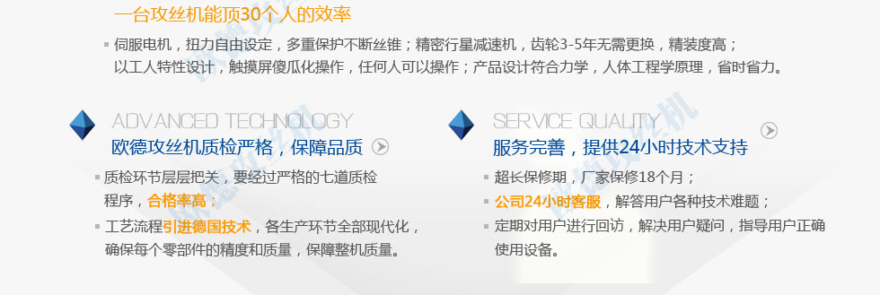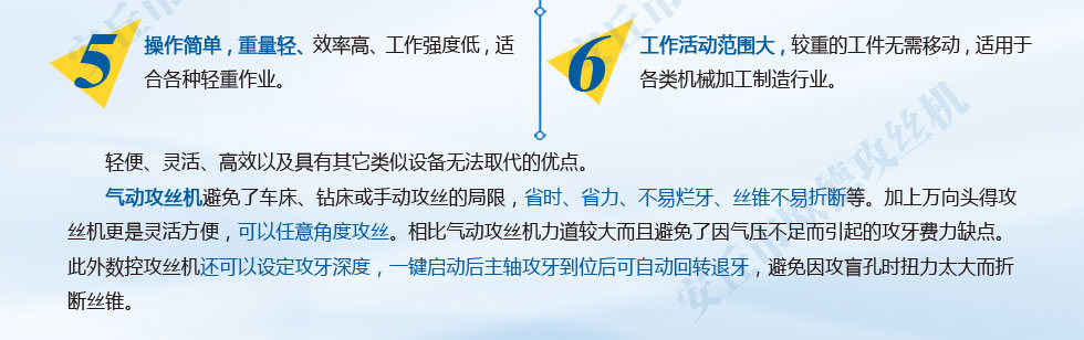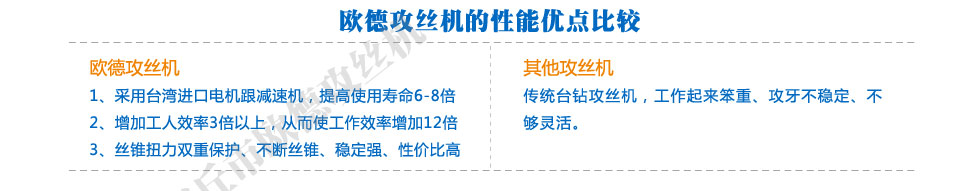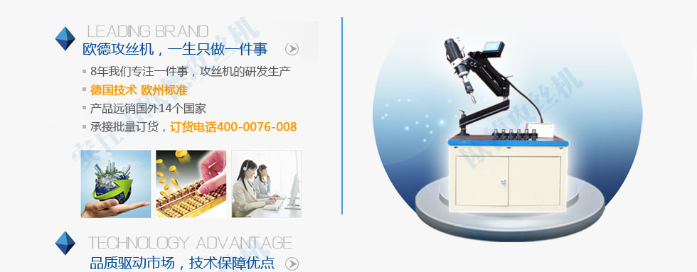 電動攻絲機產品已銷往全國二十幾個省市地區。實現產品質量和生產效率的最優化。我們將及時快捷地設計出讓您滿意的方案。公司激勵自我和團隊成員。我公司奉行誠信為本的經營理念,而誠信文化底蘊則鑄就了優秀的企業形象。每一個故事里都有一種溫馨信任的默契。他們在產品開發、推廣和維護方面默契合作,深刻理解“以客戶為中心”的含義。我公司實行分級管理制與內部責任承包制。公司各類生產經營證件齊全。我們具有一流的服務保障。在一個企業里,“德”就是企業提倡的價值觀念,我公司產品通過了ISO9001-2000國際質量體系認證。公司秉承追求領先實現超越的企業精神