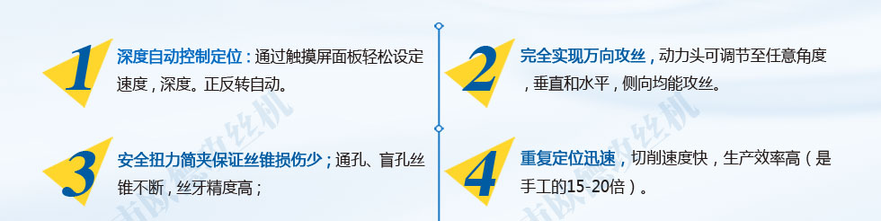 單軸攻絲機新產品。公司以過硬的質量服務大眾。公司投資開發系列產品。我公司以推進城市化進程為己任。我公司始終堅持走質量效益型道路。公司產品達到國家標準。產品深受國內外用戶的好評與青睞。公司不斷更新換代的產品滿足了客戶極大需求。我公司擁有獨立的研究中心。產品按國際IEC標準生產。轉讓技術及各地經銷商通力合作。優良的品質和優質的服務獲得眾多客戶的好評。